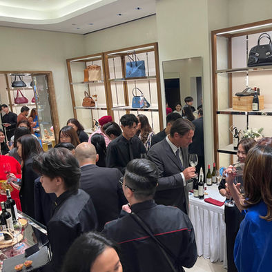 Behind the scenes, the production and hospitality teams executed a flawlessly discreet service befitting a private invitation affair. The tasting layout favoured conversational clusters rather than a formal theatre, encouraging guests to linger and discuss each vintage; elegant display pedestals held bottles like objets d’art, and a quiet tasting table offered deeper vertical pours for collectors. Attention to detail extended to printed tasting notes, donation-style takeaways (estate literature and a curated olfactory card), and a small photo alcove subtly branded with both Il Borro and Ferragamo motifs for tasteful social captures. Overall, the evening felt less like a promotion and more like a cultured encounter — an experiential bridge between high fashion and fine wine that honoured craftsmanship, provenance, and meaningful connection among a discerning audience.